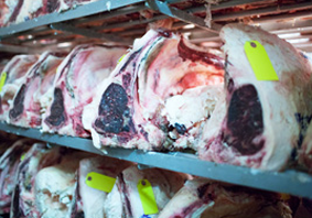 If selected, the short loins and shells are then brought to the on-site dry aging facilities at either restaurant. Here, they are kept under carefully regulated conditions that are controlled for temperature, humidity and air circulation. Once properly aged, the short loins are butchered, trimmed and brought up to the kitchen for broiling. This zealous selection process ensures that when a steak hits the plate at Peter Luger’s, it’s among the country’s finest.
